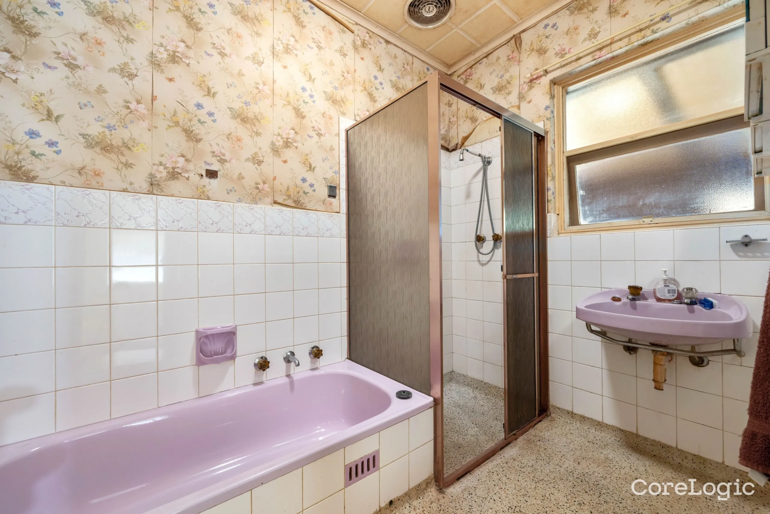 - Central main bathroom with separate bath and shower