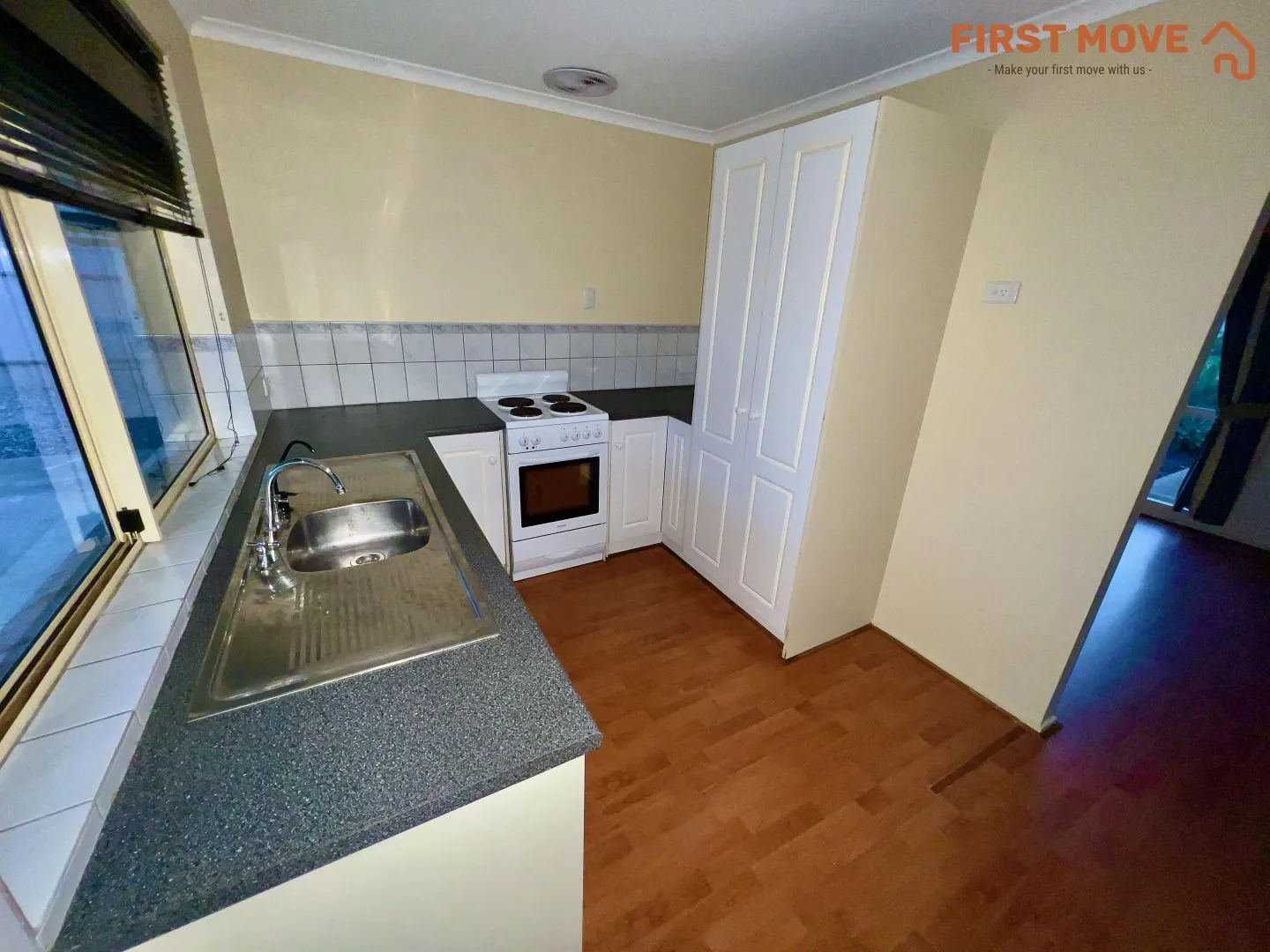 * Kitchen with electric cooktop and ample storage
